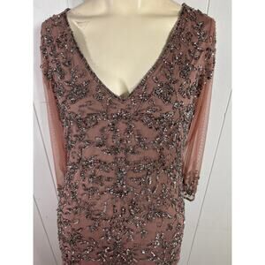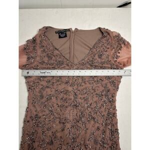 Pisarro Nights Beaded V-Neck A-Line Gown in Mauve Brown. Size 4.