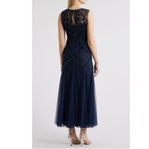 Pisarro Nights Geometric Beaded Sleeveless Navy Blue Gown New!