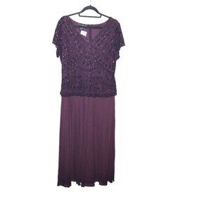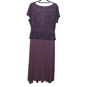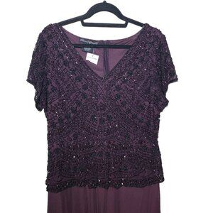 Pisarro Nights Long Mock 2-Piece Beaded Dress with Double V-neck Sz 14 Wine