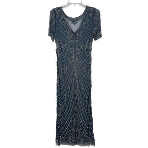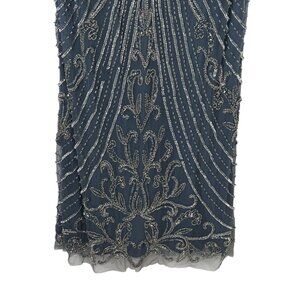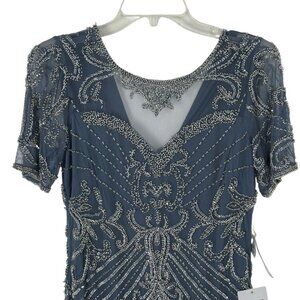 Pisarro Nights New Illusion Beaded Mesh Colum Gown Grey Sz 6 READ Formal Sequin
