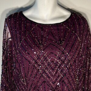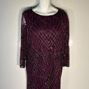 Pisarro Nights SZ 22 Purple Beaded Sheath Midi Dress Cocktail Formal Wedding Formal