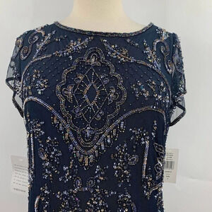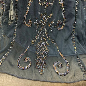 Pisarro Nights Women's Illusion Beaded Cold Shoulder Mesh Gown Size 8 NWT