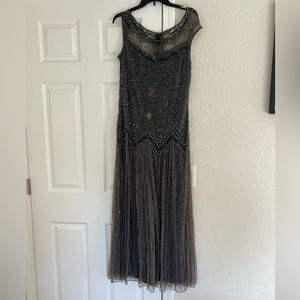 Size 14. Only worn once and no alterations. No missing beads and zip closure. Gorgeous grey.