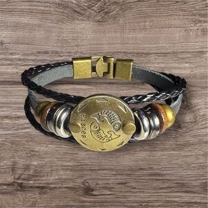 #PiscesBracelet #ZodiacJewelry #MensBracelet #LeatherBracelet #ConstellationBracelet #CowhideLeather #WoodBeads #BohoStyle #GiftForHim #UnisexJewelry