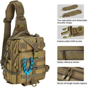 *Adjustable & Detachable Strap: Two left/right exchangeable, adjustable, and detachable shoulder straps make it easy to use this bag as a sling shoulder bag, backpack, handbag, chest bag, fishing tackle bag, or traveling bag. With two rod belts to hold your rods, the main strap length can be extended up to 51.2'', while the associate strap can be extended to 36.2''