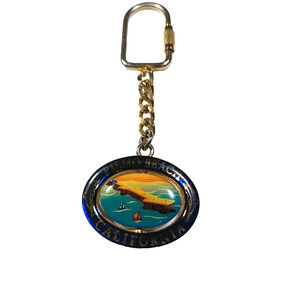 Pismo Beach California Spinner Keychain Metal Gold Tone