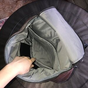 Rendezvous Poncho, 2 way zip top loading, hidden exterior pocket, dual laptop/ tablet sleeves, interior water bottle pocket, adjustable straps