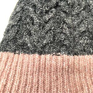 Super soft and cozy! Dark gray and dusty purple cable knit beanie/winter hat with cream pom pom on top. Bottom of the hat can be folded into a cuff/band. Also makes a great gift!
