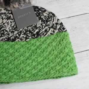Pistil Women's Lambswool Cable Knit Winter Sweater Beanie Hat Green Black