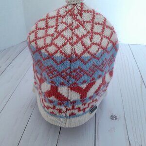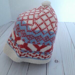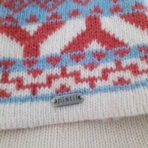Very good pre-owned condition. Pistil Women's Mariko Lambswool Blend Knit Beanie Hat. Cream/ivory with pink and blue.