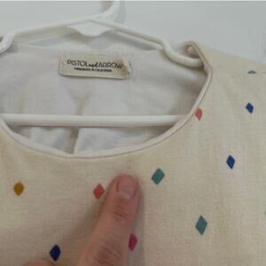 Absolutely adorable Pistol & Arrow dress, perfect for your little one! This handmade dress, crafted in California, features a charming design and high-quality construction. Pistol & Arrow is known for its unique designs and attention to detail, making this dress a special addition to your toddler's wardrobe.