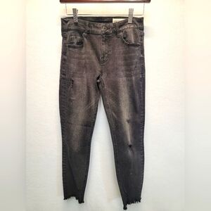 New Without Tags PISTOLA women's size 27-in black distressed chew raw hem midrise crop skinny jean. ( bin c)