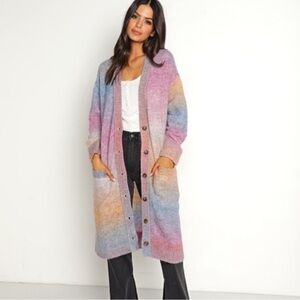 Pistola Ali Rainbow Colorful Ombré Striped Long Sleeve Duster Cardigan