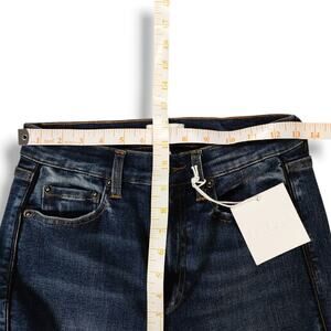 NWT Pistola Aline High Rise Stretch Skinny Dark Wash Ankle Jeans Black Faux Leather Piping 26x27 Minimalist Polished Quiet Luxury Streetwear