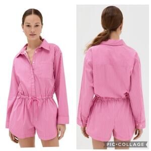 Pistola Amelie Pink White Pinstriped Romper Small Long Sleeved Collared Preppy