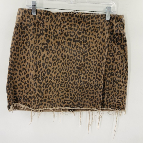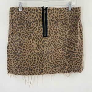 Pistola Animal Print Frayed Hem Mini Skirt Tan Black Size Large