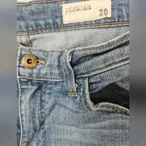 Pistola Audrey Distressed Cropped Jeans In Santa Cruz. Asymmetrical front hem but even length in the back. These are such great quality jeans, just getting too small for me. Size 28.