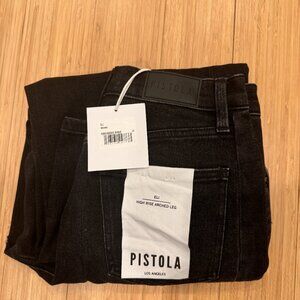 Chic black flare jeans by Pistola. Perfect for any outfit. Comfortable and stylish.
