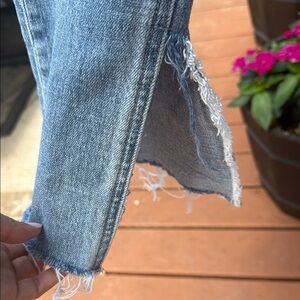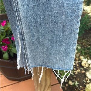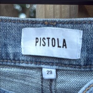 Embrace a chic, modern look with Pistola's blue cropped jeans, highlighted by a striking fringe hem. The light to medium wash denim is artfully distressed, offering a vintage vibe with contemporary flair. Perfect for making a stylish statement.