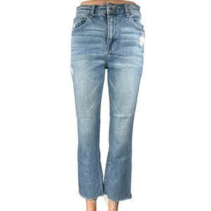 Pistola Women's Blue High Waist Distressed Frayed Raw Hem Bootcut Flared Denim Jeans Size 28