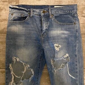 These are very distressed. Stain on back of leg Very thin worn in 100% cotton Sold at Revolve