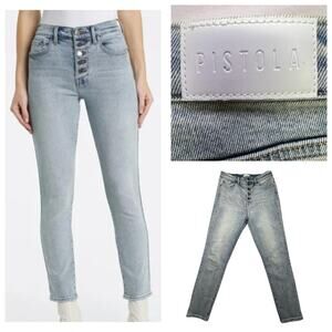 Keywords: Pistola Cara jeans, Pistola denim, high rise jeans, button fly jeans, size 29 jeans, vintage wash denim, cropped jeans, ankle jeans, tapered jeans, stretch denim, California cool jeans, modern classic denim, NWOT Pistola, cool girl style, modern vintage jeans
