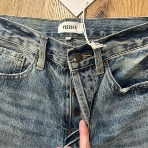 Pistola Cassie High Rise Distress Straight Leg Medium Wash Denim Jeans Sz 26 NWT