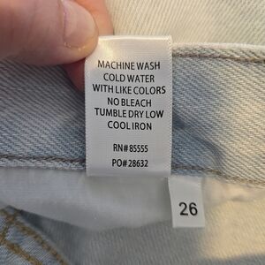 The button, distressing, and logo accents add a touch of edginess to the overall look. These jeans are perfect for any occasion and can be dressed up or down. The high-rise fit with a straight leg style and 29.5-inch inseam make these jeans a must-have in any woman's wardrobe.
