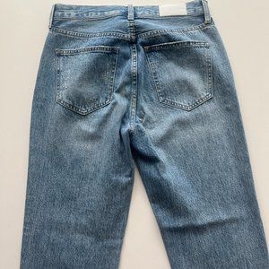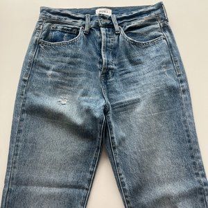 A timeless silhouette in a classic wash completes these relaxed straight-leg jeans with subtle hints of stylish distressing.