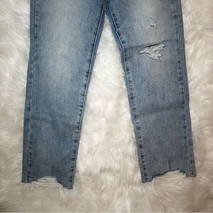 This rigid denim features a high rise straight leg that hugs at your waist and hips and is straight throughout. No flaws.