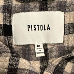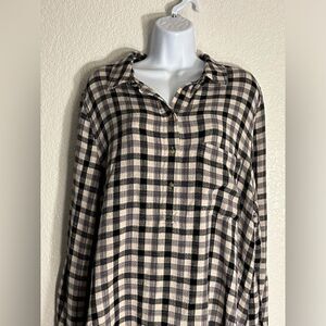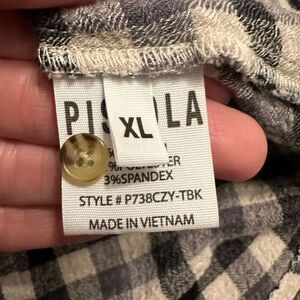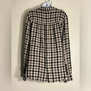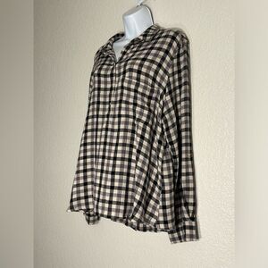 Pistola Check Popover Top Blouse Size Medium Black Cream Gray NWOT XL