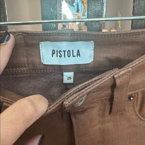 Chic chocolate denim pants by Pistola. Ideal for everyday style.