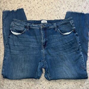 Pistola Dark Blue Boyfriend Wide Leg Cropped Raw Hem Jeans Plus Size 20W