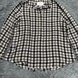 Pistola Denim Checkered Plaid Quarter Button Front Shirt Size Large