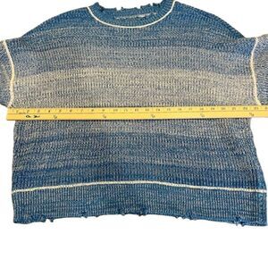 Pistola Distressed Gradient Blue Ombre Surge Stitched Sweater Cotton Size Medium. Pretty mix of blues and white. Excellent condition. See photos for details and measurements. long sleeve, light knit, fall, spring, winter, crew neck, party, casual, lounge, leisure, boho, ragged, destroyed,