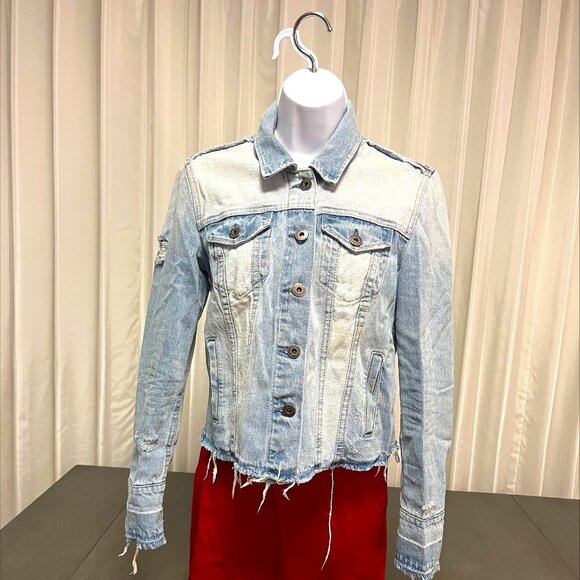 Pistola Distressed Raw Hem Light Washed Jean Jacket