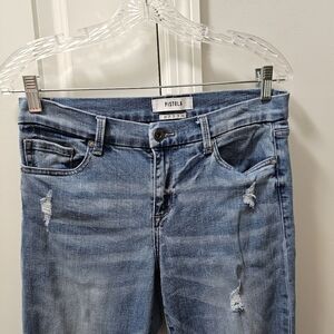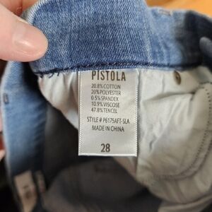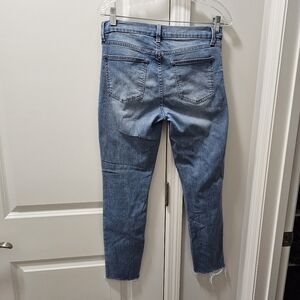 Pistola Distressed Raw Hem Skinny Jeans. Women's size 28. Preowned in good condition. Medium wash. Skinny leg. Distressing throughout. Raw Hem.