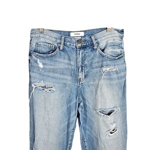 Pistola distressed rip tear jeans. High rise, relaxed fit, light wash. Intentional factory distressed. Very good condition.