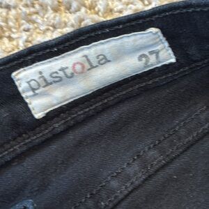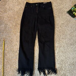 Pistola Washed Black Mid Rise Fringe Open Hem Cropped Jeans
