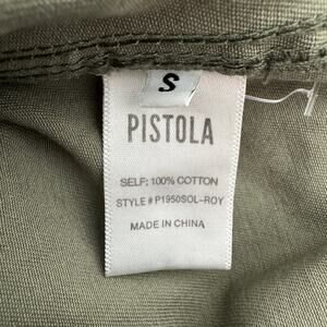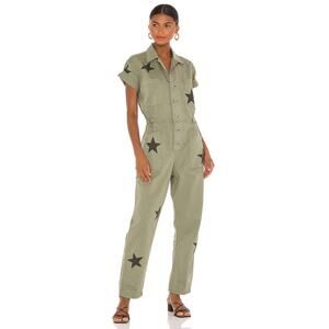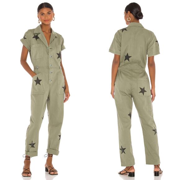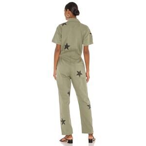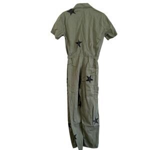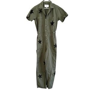 Pistola Grover Jumpsuit in Royal Honor. Size S / Small. Features front button closure, 5-pocket design, adjustable button tabs on waist, lightweight denim fabric with a screen print star motif, short sleeves, straight leg. 100% cotton. Style P00071950S. Excellent condition, no flaws.