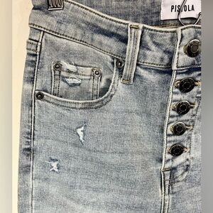 Pistola High Rise Exposed Front Button Up Slightly Distressed Skinny Jean 26