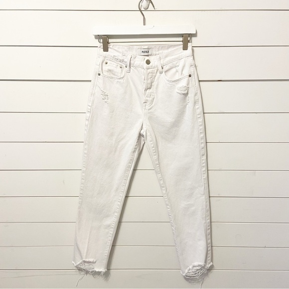 Pistola | High Rise White Copped Distressed Hem Jeans Size 24