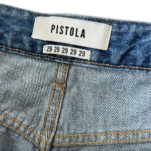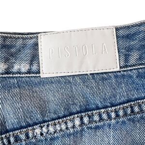 This Pistola high-rise denim mini skirt is a must-have for your casual wardrobe. Made from premium distressed denim with stylish fading and whiskering, it features a frayed raw hem, classic 5-pocket styling, and a button fly. The perfect blend of edgy and effortless!