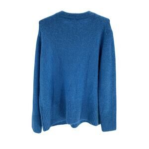 Pistola 'Ivy' Blue Alpaca Sweater Size S: mid-weight brushed knit, ribbed edges, crew neck, measurements: 23.5 inch bust x 26 inch length, hairs.