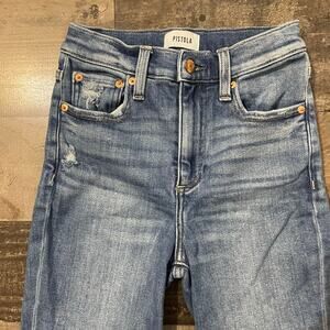 Pistola Jeans High Rise Crop Bootcut Flare Blue Stretch Distressed Women's Sz 25