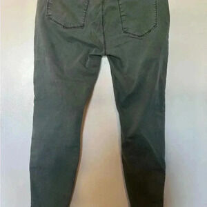 Olive green. Super soft. Some stretch. Belt loops. Multiple pockets front and back. Zippers at the ankle. Smoke free home.