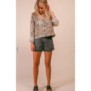 Pistola Kaine Cropped Blouse Leopard Print Field Shirt Women’s Small NWT!