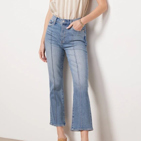 A pintucked seam accent defines the Lennon Jean by Pistola, featuring a high-rise waist, bootcut silhouette, and cropped ankle-length hems.
