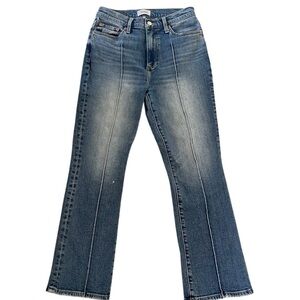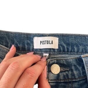 A pintucked seam accent defines the Lennon Jean by Pistola, featuring a high-rise waist, bootcut silhouette, and cropped ankle-length hems.