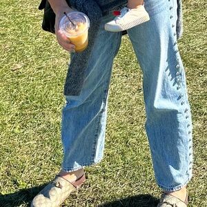 Pistola Lexi studded jeans in color satellite. Amazing for, super flattering barrel leg style